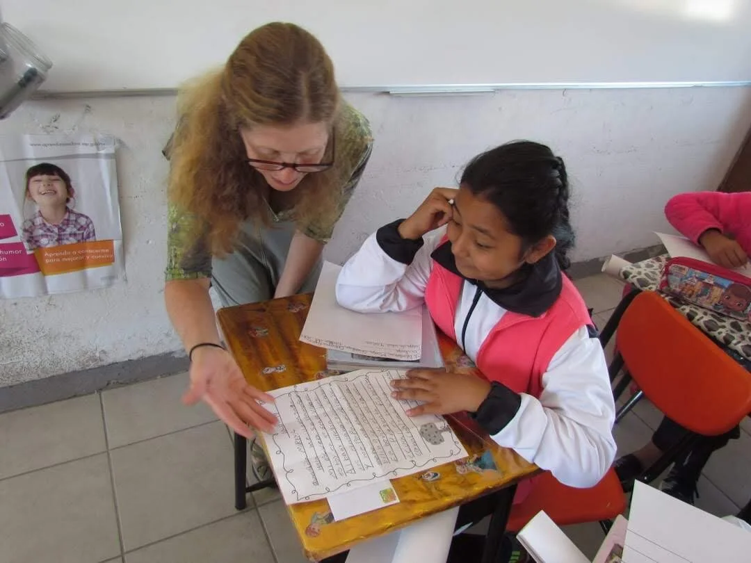 También, la voluntaria Chava Neuhaus de Oregon viajo a la comunidad San Franco en México y ayudo con proyectos de restauración y realizo un intercambio de cartas entre escuelas hermanas. Al regresar ella trajo cartas de México a los estudiantes de Oregon que esperaban con ansias ¡Algunas postales tenían regalitos de sorpresa adentro – aves de papel!